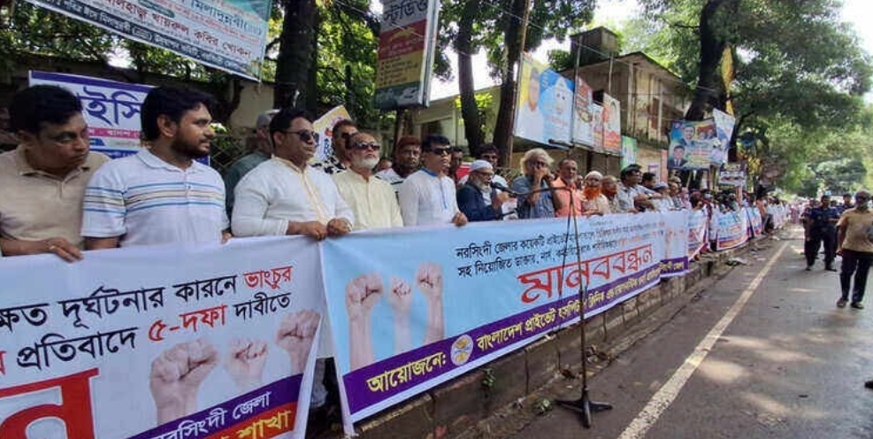 নরসিংদীতে হাসপাতালে ভাংচুর ডাক্তার-নার্স ও কর্মচারীদের লাঞ্ছিতের প্রতিবাদে মানববন্ধন