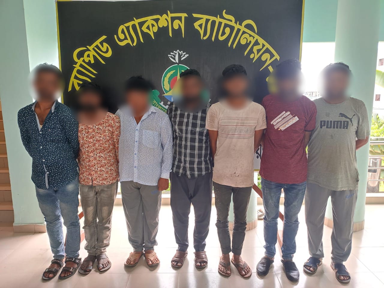 গ্রেপ্তার ব্যক্তিরা হলেন, বাগেরহাটের মোড়লগঞ্জের প্রয়াত জাহাঙ্গীরের ছেলে মো. লিটন (৩৭), ডেমরার সারুলিয়ার প্রয়াত রফিকুল ইসলামের ছেলে আক্তার হোসেন (৪৪), একই এলাকার মো. সিদ্দিকের ছেলে মো. রোমান (৩২), আব্দুল লতিফের ছেলে মো. রিয়াজ (৩৮) ও প্রয়াত তোরাব আলীর ছেলে সাইদুল ইসলাম (৩১), যাত্রাবাড়ির আনছার আলীর ছেলে মো. রফিকুল ইসলাম (২৮), মুন্সি আব্দুর রাজ্জাকের ছেলে সাগর মুন্সি (৩৮), আব্দুল বারেকের ছেলে মো. আরিফ (২৬), ভোলার কাঞ্চন মাঝির ছেলে মো. শহিদুল (৪০)।