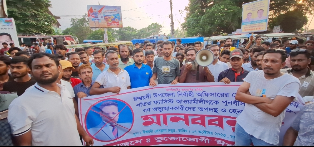 পাবনার ঈশ্বরদীতে পৃথক দাবীতে দুইটি মানববন্ধন অনুষ্ঠিত হয়েছে। মঙ্গলবার বিকালে ঈশ্বরদী প্রেসক্লাবের সামনে উপজেলা নির্বাহী কর্মকর্তার স্বেচ্ছাচারী দুর্ব্যবহার ও আঃলীগ নেতাদের পুনর্বাসনের প্রতিবাদ জানিয়ে সর্বসাধারণের ব্যানারে মানববন্ধনে বক্তব্য দেন, উপজেলা স্বেচ্ছাসেবক দলের সাবেক সদস্য সচিব মেহেদী হাসান, পৌরসভর সাবেক কাউন্সিল আনোয়ার হোসেন জনিসহ অন্যান্যরা। মানববন্ধনে বক্তারা বলেন, সদ্য যোগদান করা ঈশ্বরদী উপজেলা নির্বাহী কর্মকর্তা মনিরুজ্জামান সেবা গ্রহীতাদের সাথে স্বেচ্ছাচারী দুর্ব্যবহার করছেন। পতিত ফ্যাসিস্ট আওয়ামীলীগকে পুনর্বাসনের যড়যন্ত্রসহ গণ অভ্যুত্থানকারীদের অপদস্থ ও হেনস্থার অভিযোগ পাওয়া গেছে তার বিরুদ্ধে। এসময় উর্ধতন কর্মকর্তাদের সুদৃষ্টি কামনা করে দ্রুত সময়ে ব্যবস্থা নেওয়ার অনুরোধ জানান বক্তারা।