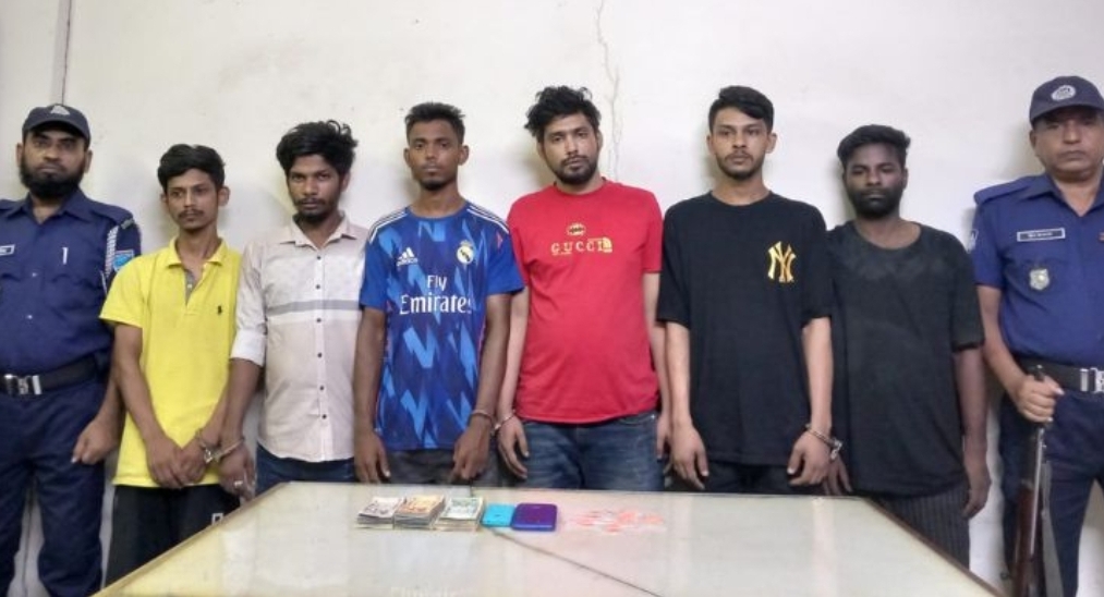 গ্রেপ্তারকৃতরা হলেন, নাসিম বিল্লাহ ওরফে নাসিম (৩৪), মো. সাঈদ (২৩), মো. সাইদুল ইসলাম (২৩), মো. রাজীব (২৭), মো. সাগর (২৫) ও মো. রমজান হোসেন (৩২)।