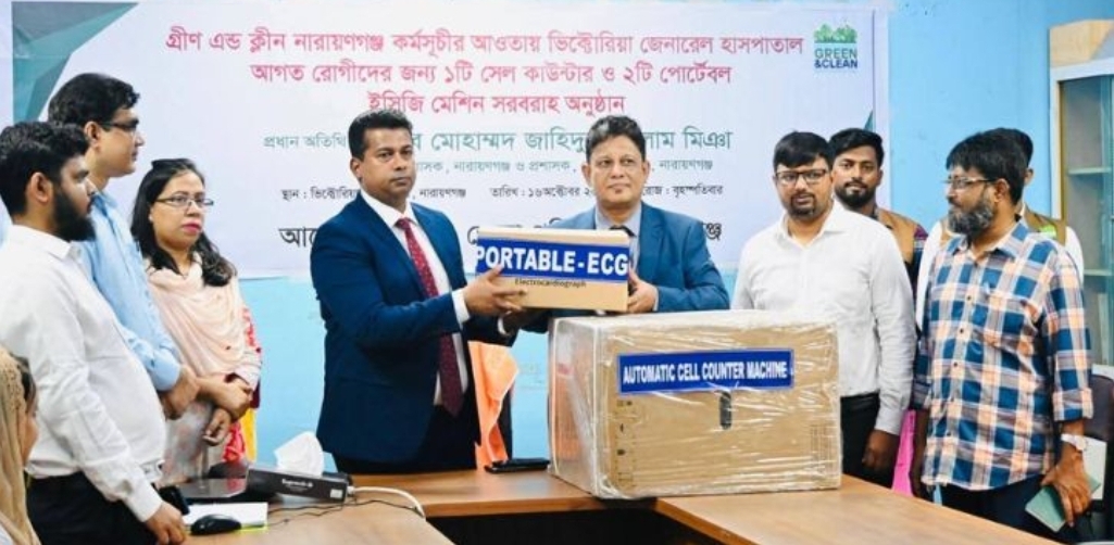 নারায়ণগঞ্জের ঐতিহ্যবাহী সরকারি জেনারেল (ভিক্টোরিয়া) হাসপাতালে যুক্ত করা হয়েছে অত্যাধুনিক সেল কাউন্টার (সিবিসি) ও পোর্টেবল ইসিজি মেশিন।যার মাধ্যমে রক্ত পরীক্ষা ও হার্টের জরুরি ইসিজি সেবা এখন থেকে আরও দ্রুত ও নির্ভুলভাবে পরিক্ষা করা যাবে।এর আগে হাসপাতালে রক্ত পরীক্ষা সম্পূর্ণ ম্যানুয়াল পদ্ধতিতে সম্পন্ন করা হতো এছাড়া হার্টের রোগীদের জন্য কোনো পোর্টেবল ইসিজি মেশিনও ছিল না।