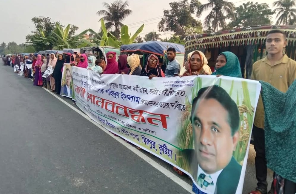 গাইবান্ধায় ৮ দফা দাবিতে সনাতন ধর্মাবলম্বী ছাত্র-জনতার মানববন্ধন